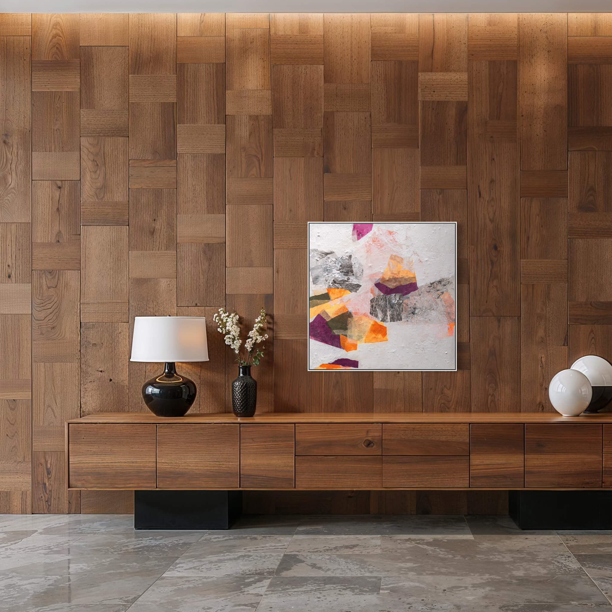 70 x 70 cm | Collage aus Chinapapier auf Leinwand | inkl. weißer Rahmen | 2025