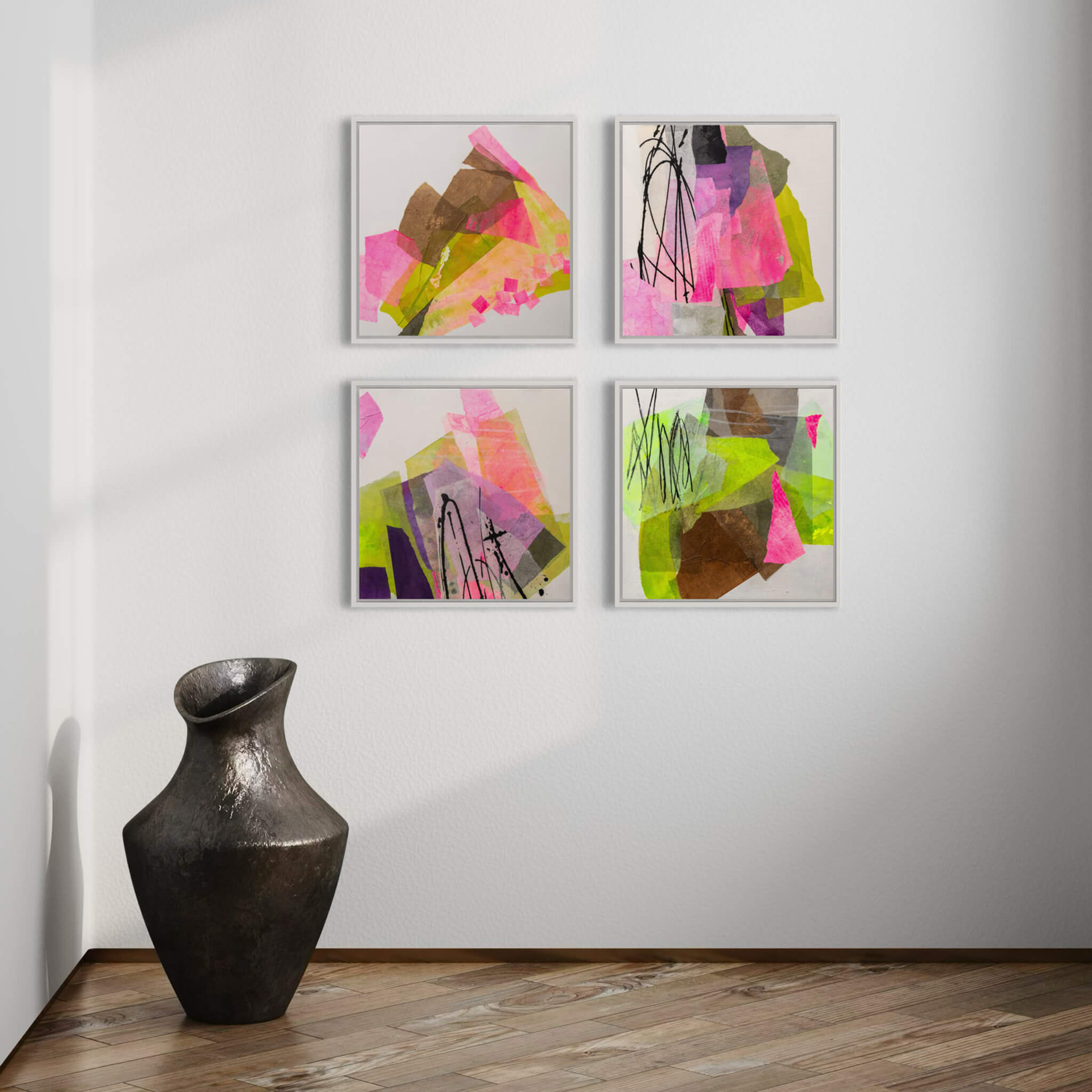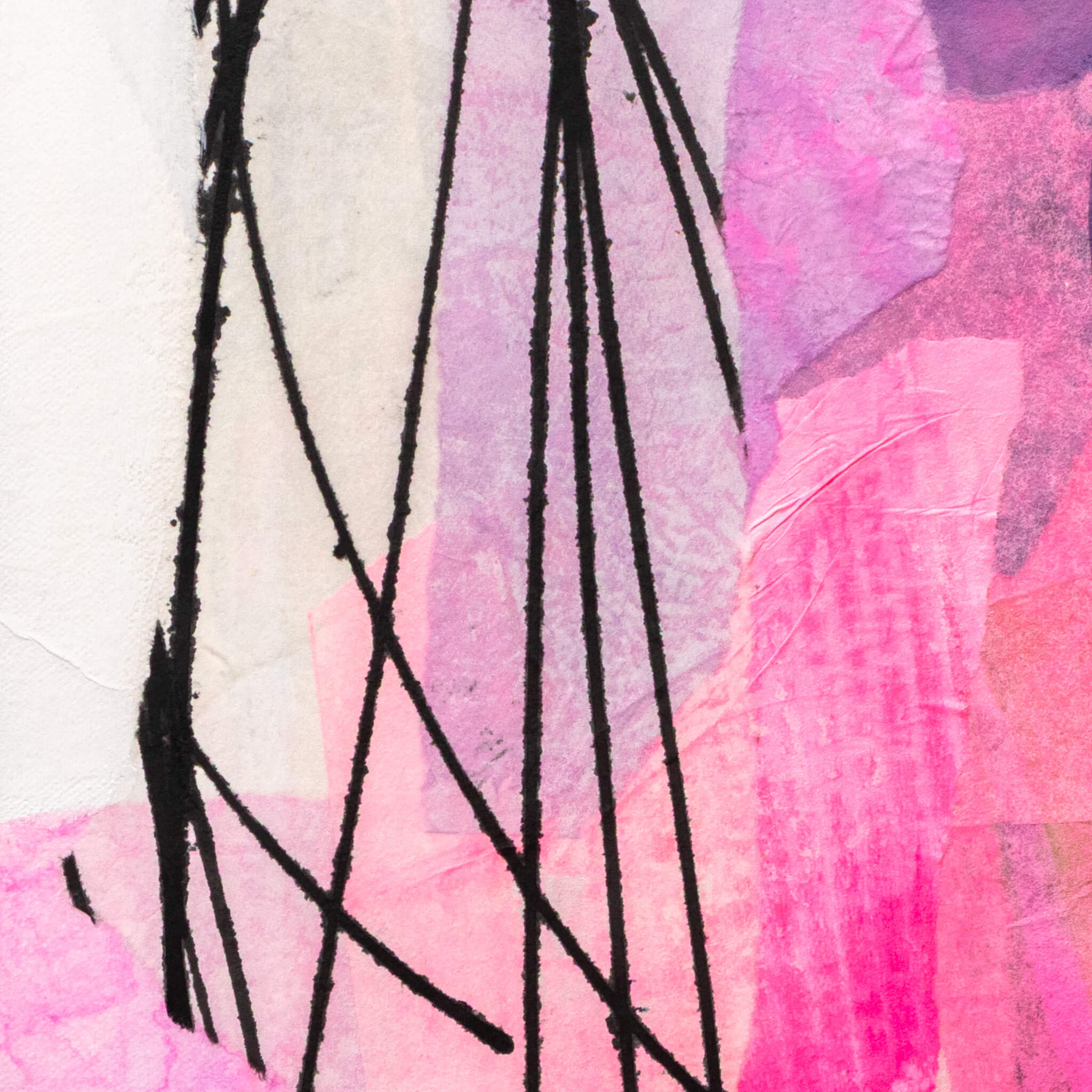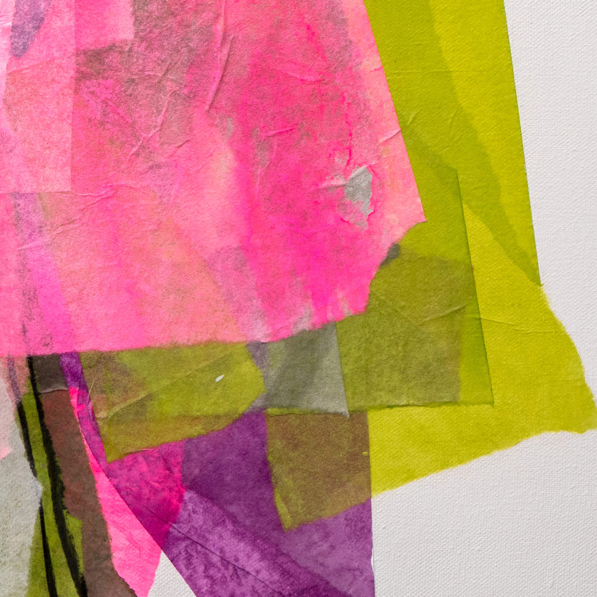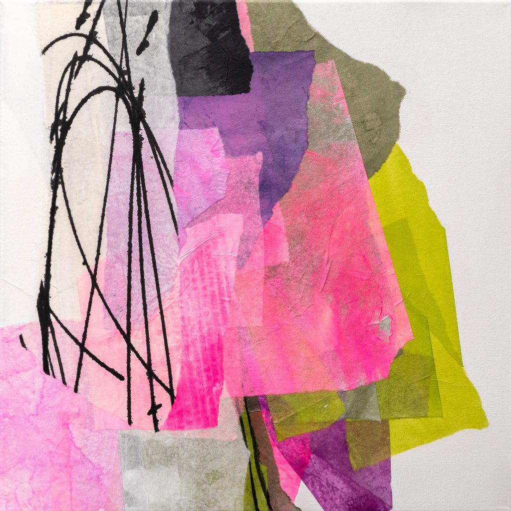 Das Werk „Ecken und Kanten No. 8“ ist eine Collage aus Chinapapieren im Format (40 × 40 cm) auf Leinwand. Der Bildgrund wurde mit einer Marmormehl-Struktur versehen und in mehreren Schichten Weiß übermalt, wobei die reliefartige Oberfläche weiterhin deutlich sichtbar bleibt. Ergänzt wird dies durch farbige Papierfragmente aus vielfach geschichtetem, von mir eingefärbtem Chinapapier, die sich zu einer ausgewogenen, vielschichtigen Komposition verbinden.